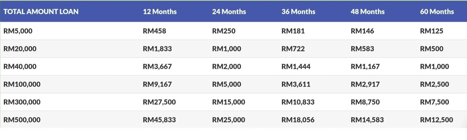 We offer loans from RM500 up to RM500,000